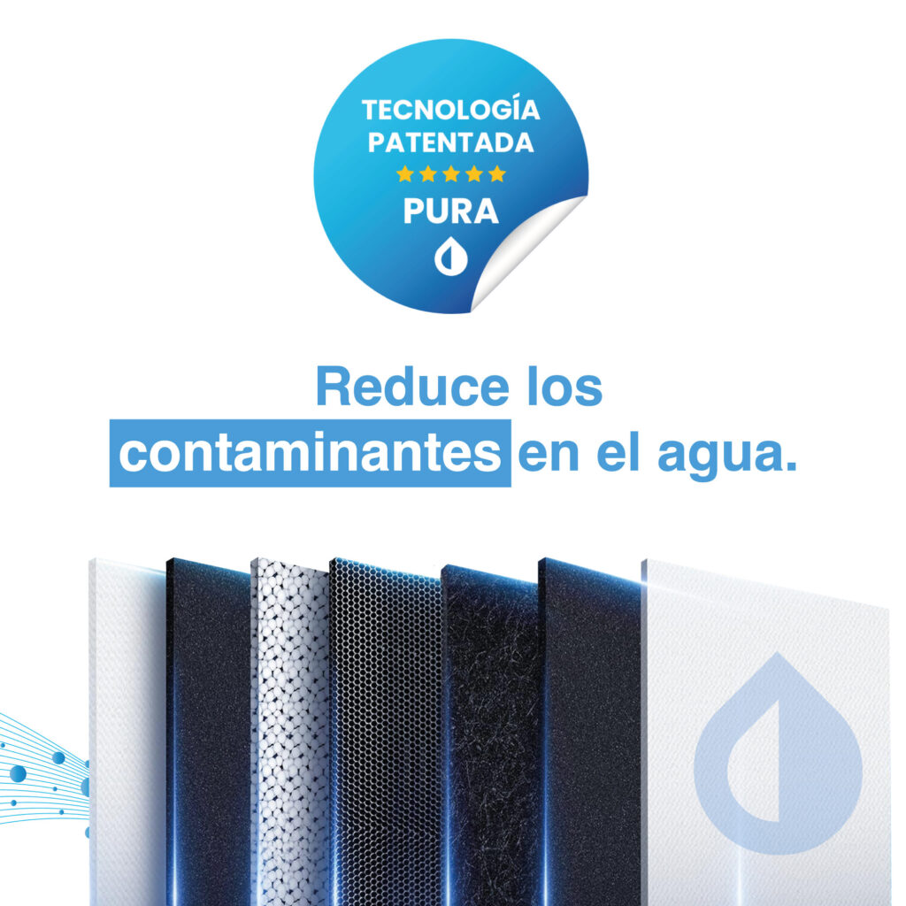 El PURA Mini integra la tecnología base del PURA Pacífico. Cada Núcleo Mini combina un bloque sólido de carbón activado de alta pureza, plata coloidal, KDF-F, fibras microporosas y aporte controlado de Magnesio, asociado al concepto PURA de agua rica. Esta combinación exclusiva elimina impurezas sin quitar los minerales naturales del agua, logrando un agua más equilibrada, ligera y con mejor sabor.