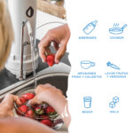 Se aprovecha el 100% del agua, no tienen rechazo. Pura Pacífico sobre y bajo mesada funcionan con la presión del agua de entrada, es decir que aprovechan la energía que viene con el agua para hacer el proceso de purificación. El agua ingresa al equipo, toma contacto con la tecnología de purificación del núcleo interno y sale purificada, esto hace que sea muy práctico instalar un PURA para obtener agua rica, sin plásticos de un solo uso ni transportes innecesarios.