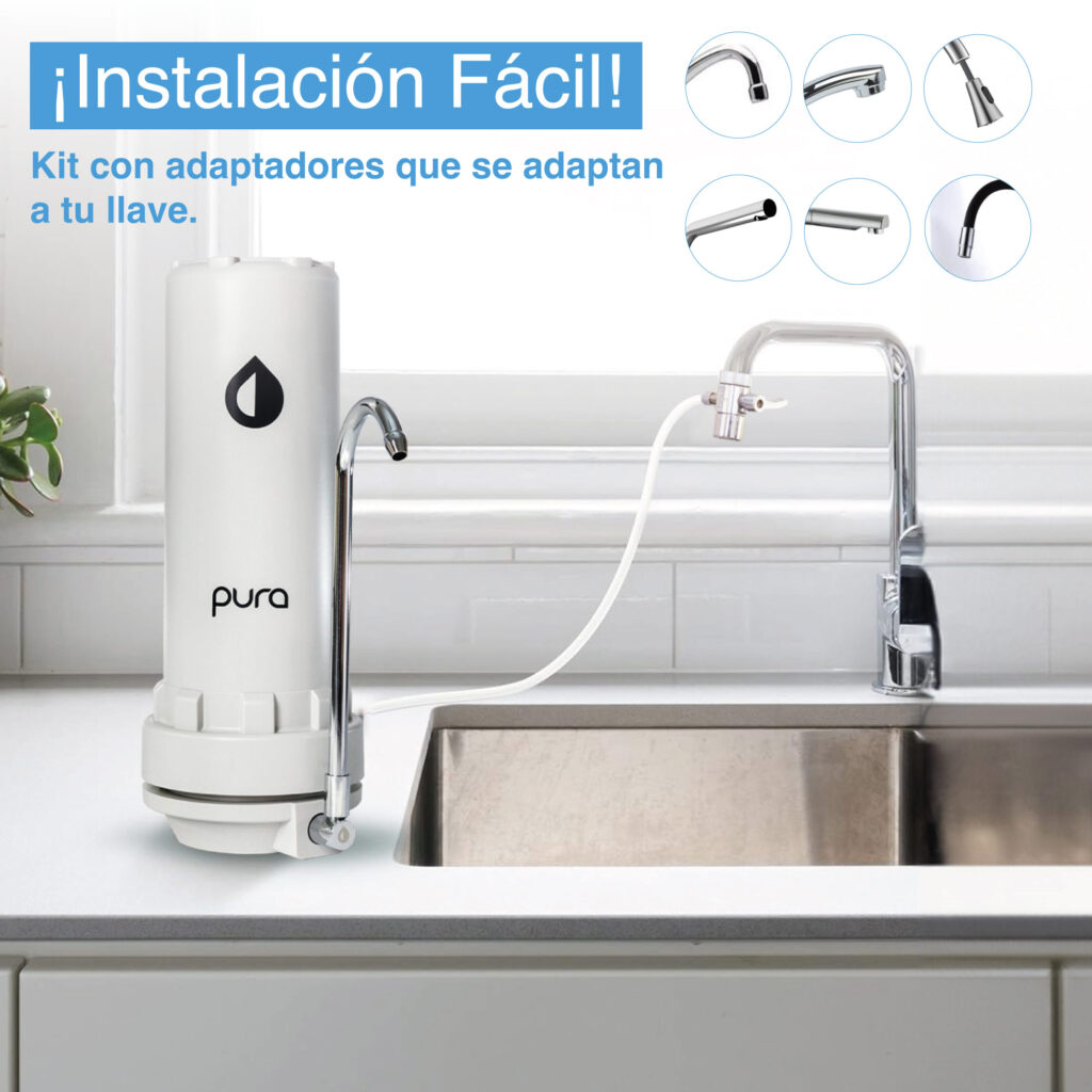 PURA Mini incluye kit de adaptadores y accesorios y es compatible con el 100% de las llaves estándar para una conexión rápida, fácil y segura. PURA Pacífico sobre mesada a se conecta de forma segura con su sistema de derivación para elegir entre agua purificada y agua de red. Ambos se instalan en minutos, sin conexión eléctrica ni roturas.
