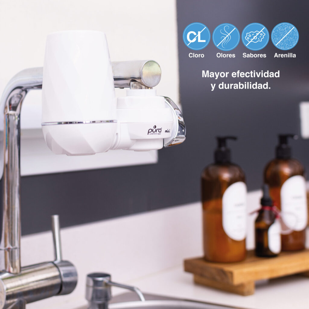 PURA Mini es el formato ultra-compacto y versátil para conectar directo a la llave. Es perfecto para sumar un segundo punto de agua PURA en la casa: baño, lavadero, cocina secundaria o donde más lo uses. Ideal para tu rutina diaria de Skincare, limpieza facial y hábitos saludables. Entrega agua más equilibrada y agradable, con Magnesio agregado ligado al concepto de agua rica, para hidratarte mejor y usarla en lo que haces todos los días: infusiones, enjuagues, frutas y verduras, hielo, botellas, todo.