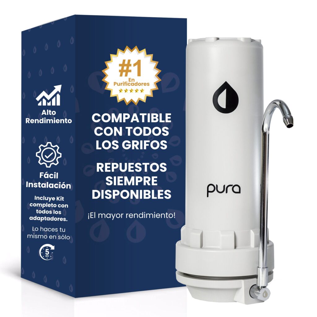 Purificador de agua que se coloca en minutos sobre la mesada de la cocina, eliminando impurezas, microplasticos y cloro.